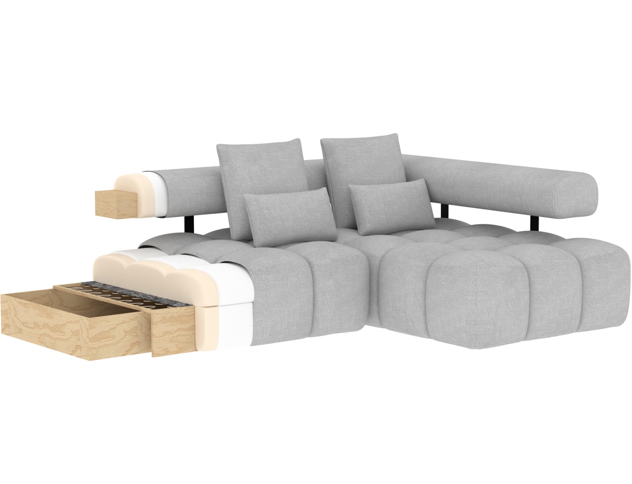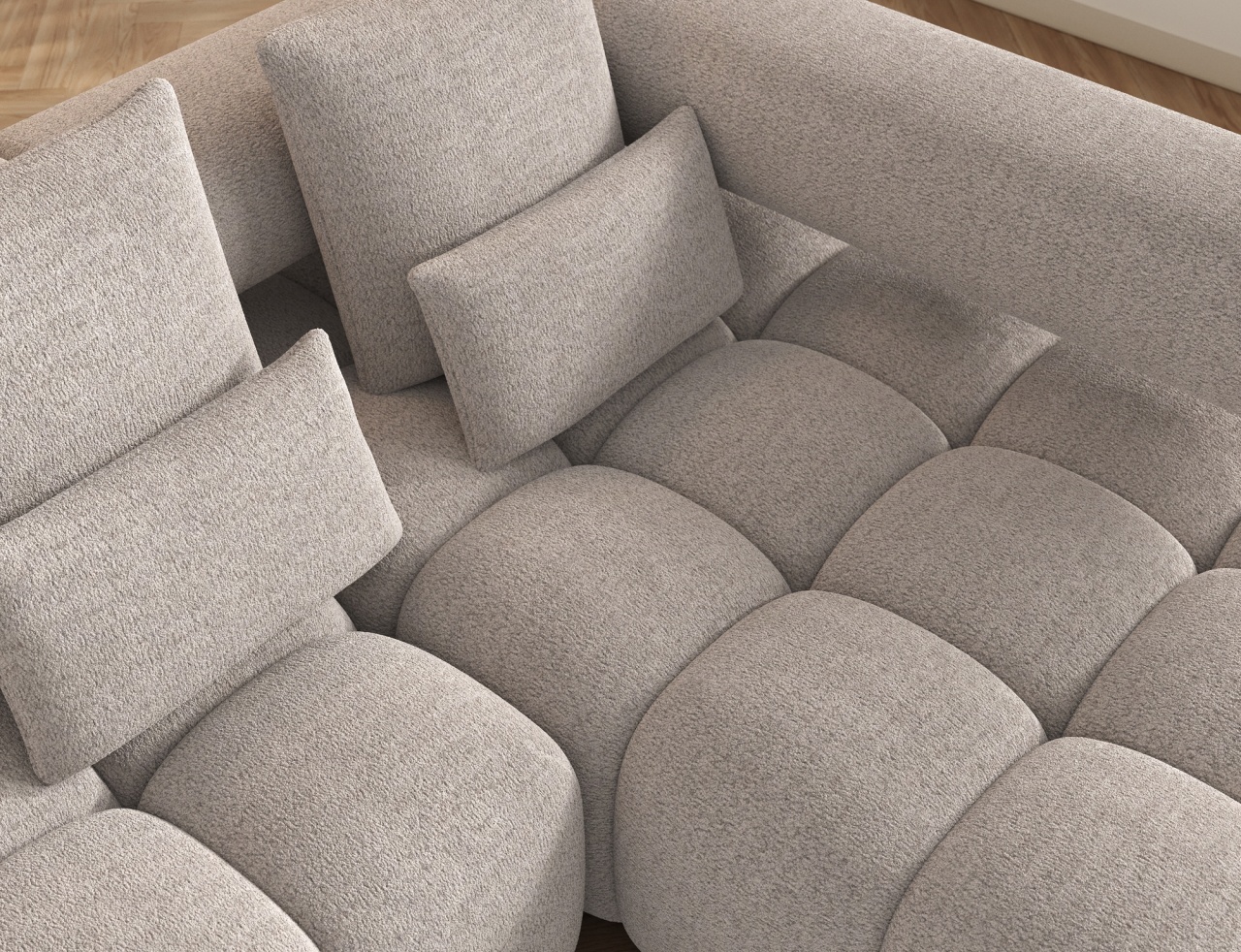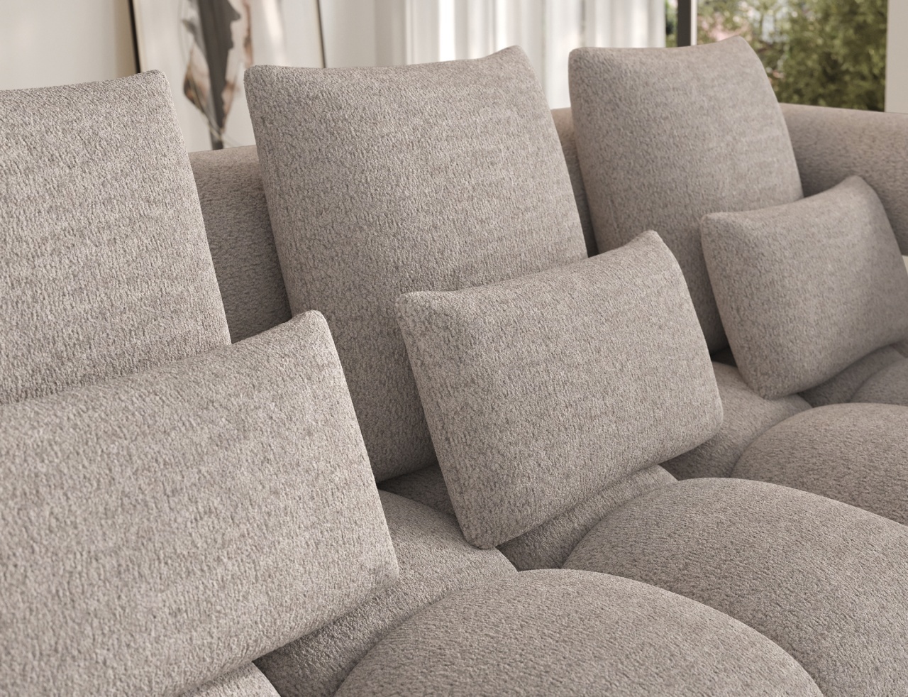 Colțarul Levvi, cu dimensiunile 260×184×102 cm, este o piesă de mobilier modernă și funcțională, concepută pentru confort zilnic și design estetic al locuinței. Echipat cu un sistem de arcuri ondulate de tip B și cu spumă cu înaltă rezistență HR3030, oferă suport optim pentru corp și o construcție durabilă. Funcția practică de transformare în pat permite convertirea rapidă într-un pat confortabil pentru oaspeții care rămân peste noapte. Datorită spatelui complet tapițat, colțarul poate fi plasat liber în încăpere, fără a fi nevoie să fie lipit de perete, oferind mai multă libertate în amenajarea spațiului. Picioarele din plastic negru completează aspectul general și subliniază caracterul modern și minimalist al colțarului. Levvi este soluția ideală pentru cei care caută un colțar elegant cu funcție de pat, care combină stilul modern, confortul și practicitatea zilnică. Dimensiuni: Lungime: 260 cm Adâncime: 184 cm Înălțime: 102 cm Adâncime șezut: 40 cm Înălțime șezut: 47 cm Dimensiuni picioare: 2,5 cm, plastic, negru Greutate: 142,7 kg Capacitate de ridicare: 250 kg Suprafață de dormit: 110×187 cm Produsul nu este montat, montarea este rapidă și ușoară. Produsul este personalizabil, culoarea și materialul se aleg pe baza paletarelor la cererea clientului. Prețul poate suferi modificări în funcție de grupa de material aleasă.