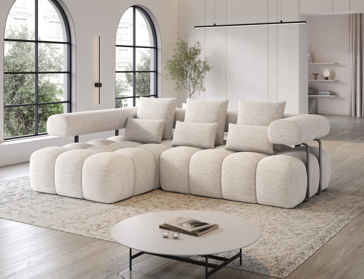 Colțarul Levvi, cu dimensiunile 260×184×102 cm, este o piesă de mobilier modernă și funcțională, concepută pentru confort zilnic și design estetic al locuinței. Echipat cu un sistem de arcuri ondulate de tip B și cu spumă cu înaltă rezistență HR3030, oferă suport optim pentru corp și o construcție durabilă. Funcția practică de transformare în pat permite convertirea rapidă într-un pat confortabil pentru oaspeții care rămân peste noapte. Datorită spatelui complet tapițat, colțarul poate fi plasat liber în încăpere, fără a fi nevoie să fie lipit de perete, oferind mai multă libertate în amenajarea spațiului. Picioarele din plastic negru completează aspectul general și subliniază caracterul modern și minimalist al colțarului. Levvi este soluția ideală pentru cei care caută un colțar elegant cu funcție de pat, care combină stilul modern, confortul și practicitatea zilnică. Dimensiuni: Lungime: 260 cm Adâncime: 184 cm Înălțime: 102 cm Adâncime șezut: 40 cm Înălțime șezut: 47 cm Dimensiuni picioare: 2,5 cm, plastic, negru Greutate: 142,7 kg Capacitate de ridicare: 250 kg Suprafață de dormit: 110×187 cm Produsul nu este montat, montarea este rapidă și ușoară. Produsul este personalizabil, culoarea și materialul se aleg pe baza paletarelor la cererea clientului. Prețul poate suferi modificări în funcție de grupa de material aleasă.