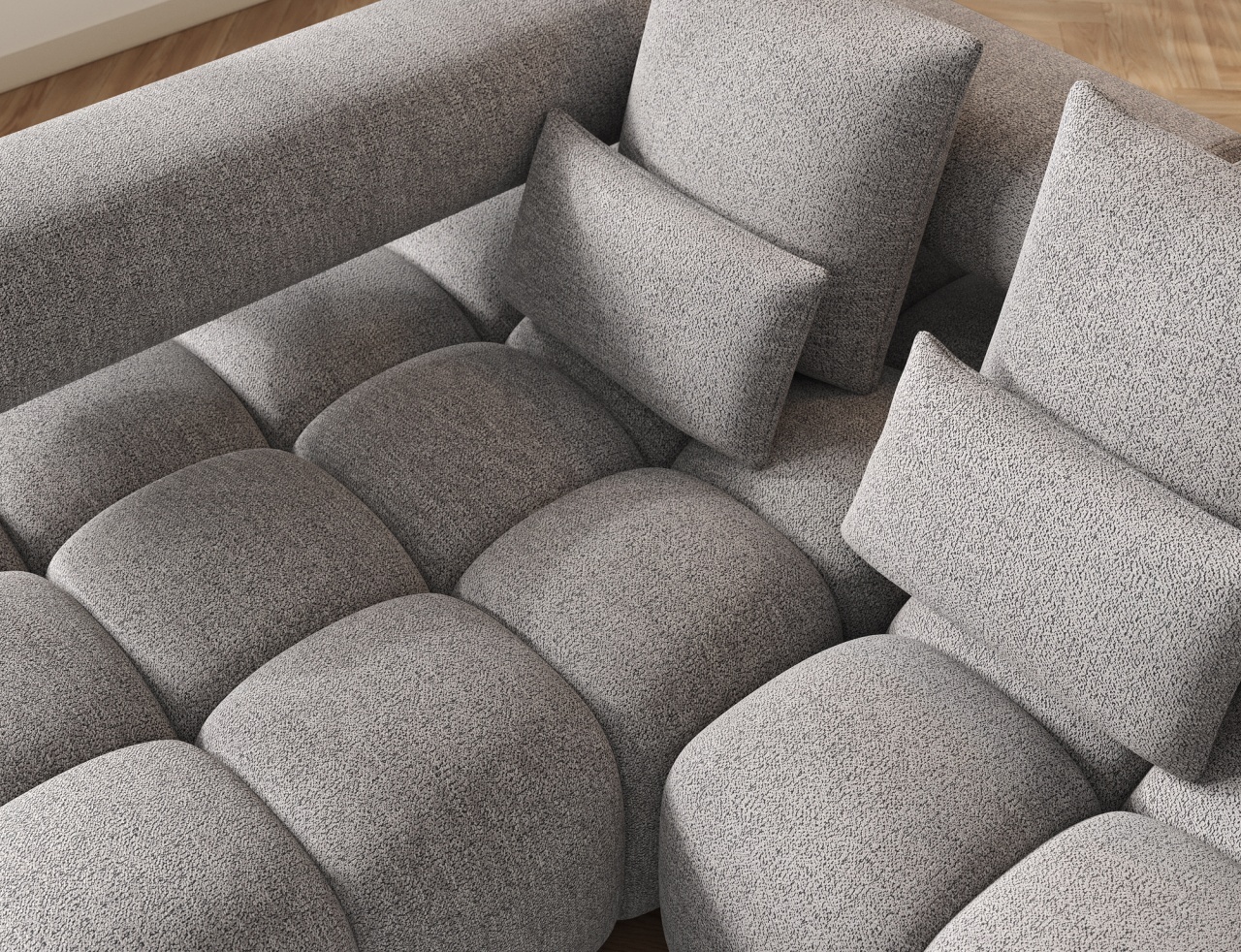 Colțarul Levvi, cu dimensiunile 260×184×102 cm, este o piesă de mobilier modernă și funcțională, concepută pentru confort zilnic și design estetic al locuinței. Echipat cu un sistem de arcuri ondulate de tip B și cu spumă cu înaltă rezistență HR3030, oferă suport optim pentru corp și o construcție durabilă. Funcția practică de transformare în pat permite convertirea rapidă într-un pat confortabil pentru oaspeții care rămân peste noapte. Datorită spatelui complet tapițat, colțarul poate fi plasat liber în încăpere, fără a fi nevoie să fie lipit de perete, oferind mai multă libertate în amenajarea spațiului. Picioarele din plastic negru completează aspectul general și subliniază caracterul modern și minimalist al colțarului. Levvi este soluția ideală pentru cei care caută un colțar elegant cu funcție de pat, care combină stilul modern, confortul și practicitatea zilnică. Dimensiuni: Lungime: 260 cm Adâncime: 184 cm Înălțime: 102 cm Adâncime șezut: 40 cm Înălțime șezut: 47 cm Dimensiuni picioare: 2,5 cm, plastic, negru Greutate: 142,7 kg Capacitate de ridicare: 250 kg Suprafață de dormit: 110×187 cm Produsul nu este montat, montarea este rapidă și ușoară. Produsul este personalizabil, culoarea și materialul se aleg pe baza paletarelor la cererea clientului. Prețul poate suferi modificări în funcție de grupa de material aleasă.