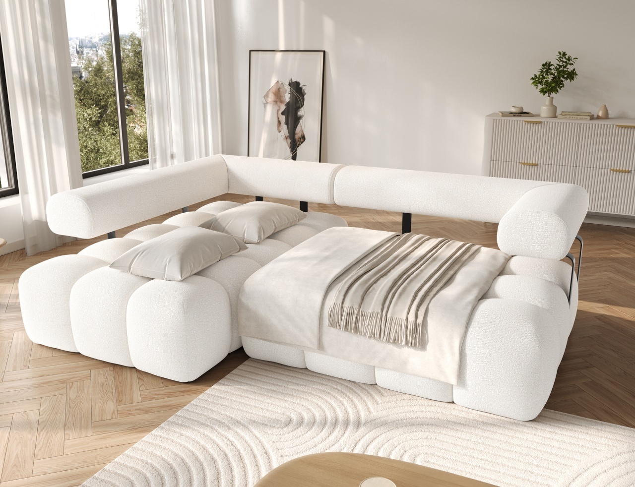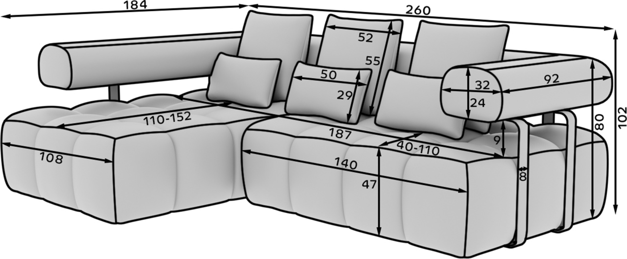 Colțarul Levvi, cu dimensiunile 260×184×102 cm, este o piesă de mobilier modernă și funcțională, concepută pentru confort zilnic și design estetic al locuinței. Echipat cu un sistem de arcuri ondulate de tip B și cu spumă cu înaltă rezistență HR3030, oferă suport optim pentru corp și o construcție durabilă. Funcția practică de transformare în pat permite convertirea rapidă într-un pat confortabil pentru oaspeții care rămân peste noapte. Datorită spatelui complet tapițat, colțarul poate fi plasat liber în încăpere, fără a fi nevoie să fie lipit de perete, oferind mai multă libertate în amenajarea spațiului. Picioarele din plastic negru completează aspectul general și subliniază caracterul modern și minimalist al colțarului. Levvi este soluția ideală pentru cei care caută un colțar elegant cu funcție de pat, care combină stilul modern, confortul și practicitatea zilnică. Dimensiuni: Lungime: 260 cm Adâncime: 184 cm Înălțime: 102 cm Adâncime șezut: 40 cm Înălțime șezut: 47 cm Dimensiuni picioare: 2,5 cm, plastic, negru Greutate: 142,7 kg Capacitate de ridicare: 250 kg Suprafață de dormit: 110×187 cm Produsul nu este montat, montarea este rapidă și ușoară. Produsul este personalizabil, culoarea și materialul se aleg pe baza paletarelor la cererea clientului. Prețul poate suferi modificări în funcție de grupa de material aleasă.