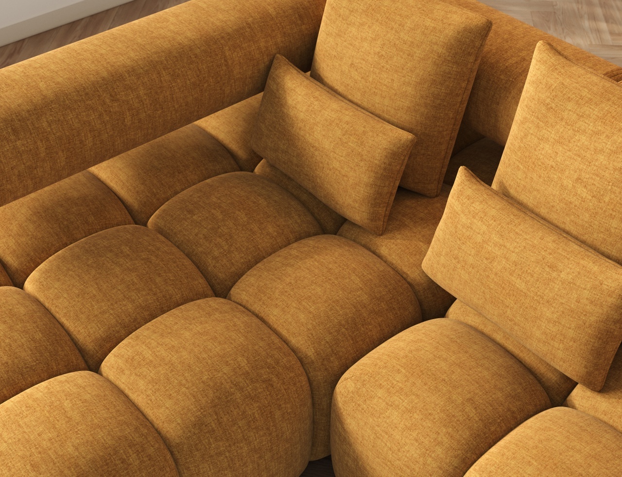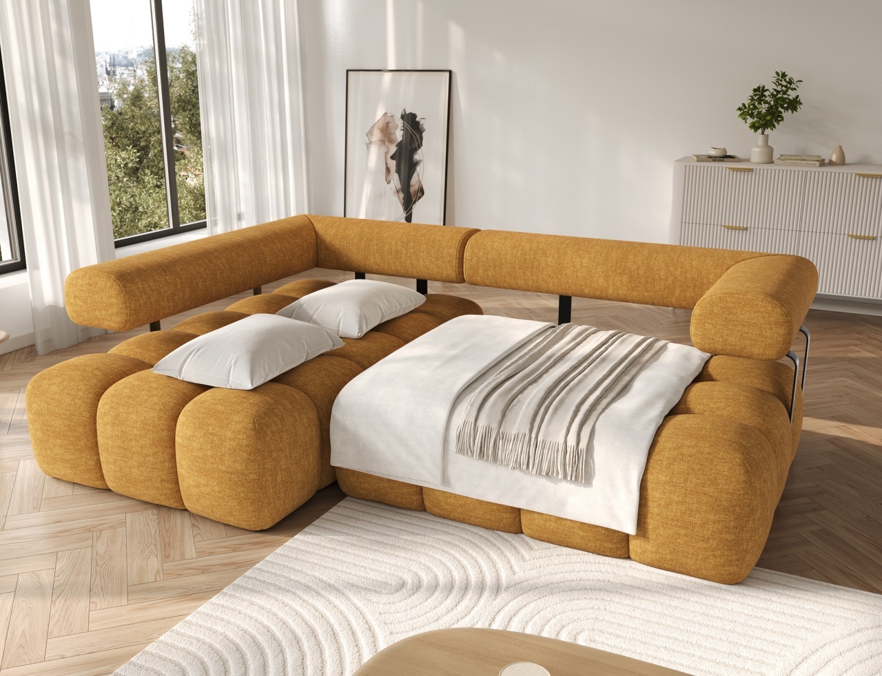 Colțarul Levvi, cu dimensiunile 260×184×102 cm, este o piesă de mobilier modernă și funcțională, concepută pentru confort zilnic și design estetic al locuinței. Echipat cu un sistem de arcuri ondulate de tip B și cu spumă cu înaltă rezistență HR3030, oferă suport optim pentru corp și o construcție durabilă. Funcția practică de transformare în pat permite convertirea rapidă într-un pat confortabil pentru oaspeții care rămân peste noapte. Datorită spatelui complet tapițat, colțarul poate fi plasat liber în încăpere, fără a fi nevoie să fie lipit de perete, oferind mai multă libertate în amenajarea spațiului. Picioarele din plastic negru completează aspectul general și subliniază caracterul modern și minimalist al colțarului. Levvi este soluția ideală pentru cei care caută un colțar elegant cu funcție de pat, care combină stilul modern, confortul și practicitatea zilnică. Dimensiuni: Lungime: 260 cm Adâncime: 184 cm Înălțime: 102 cm Adâncime șezut: 40 cm Înălțime șezut: 47 cm Dimensiuni picioare: 2,5 cm, plastic, negru Greutate: 142,7 kg Capacitate de ridicare: 250 kg Suprafață de dormit: 110×187 cm Produsul nu este montat, montarea este rapidă și ușoară. Produsul este personalizabil, culoarea și materialul se aleg pe baza paletarelor la cererea clientului. Prețul poate suferi modificări în funcție de grupa de material aleasă.