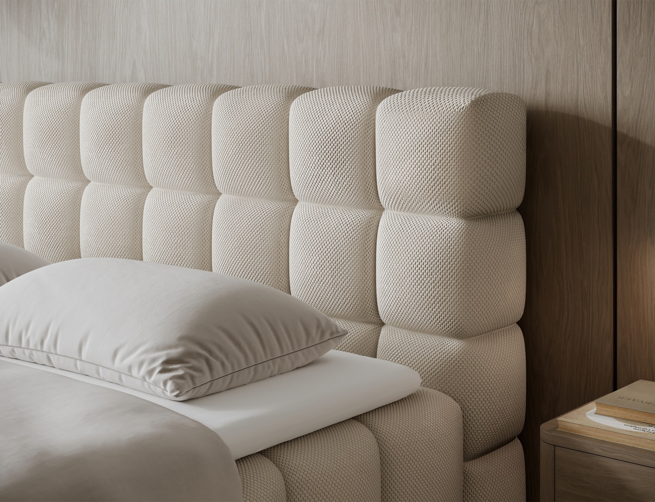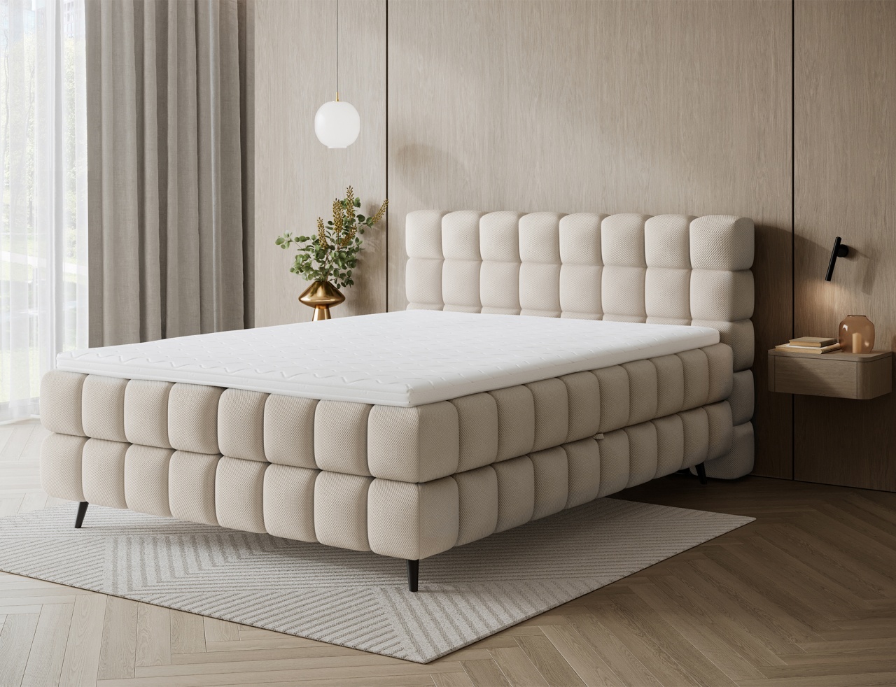 Patul continental Sabeno este o alegere elegantă și funcțională pentru orice dormitor modern. Modelul este disponibil în trei variante de dimensiuni: 140x200 cm, 160x200 cm și 180x200 cm, permițându-vă să ajustați lățimea patului în funcție de nevoile individuale. Confortul în timpul somnului este asigurat de combinația dintre arcurile Bonell și spuma T2540, care oferă susținere adecvată și durabilitate. Patul Sabeno este echipat cu un compartiment practic pentru depozitarea lenjeriei. Picioarele negre din lemn completează designul, adăugând eleganță subtilă și lejeritate. Stilul modern al patului Sabeno îl face să se potrivească perfect atât în interioare minimaliste, cât și în amenajări mai expresive. Datorită funcționalității, materialelor de înaltă calitate și finisajului estetic, patul continental Sabeno este alegerea ideală pentru cei care apreciază confortul, durabilitatea și mobilierul de dormitor stilat. Dimensiuni: Lățime: 162 cm Lungime: 222 cm Înălțime: 102 cm Înălțime șezut: 56 cm Suprafață dormit: 140x200 cm Înălțime picioare: 10 cm Recipient depozitare lenjerie de pat: 2x 182x66x15 cm Spătar tapițat: nu Capacitate ridicare: 220 kg Produsul nu este montat, montarea este rapidă și ușoară. Produsul este personalizabil, culoarea și materialul se aleg pe baza paletarelor la cererea clientului. Prețul poate suferi modificări în funcție de grupa de material aleasă.
