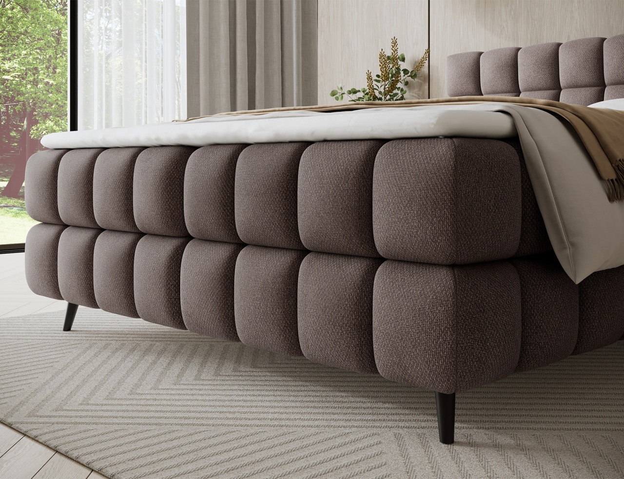 Patul continental Sabeno este o alegere elegantă și funcțională pentru orice dormitor modern. Modelul este disponibil în trei variante de dimensiuni: 140x200 cm, 160x200 cm și 180x200 cm, permițându-vă să ajustați lățimea patului în funcție de nevoile individuale. Confortul în timpul somnului este asigurat de combinația dintre arcurile Bonell și spuma T2540, care oferă susținere adecvată și durabilitate. Patul Sabeno este echipat cu un compartiment practic pentru depozitarea lenjeriei. Picioarele negre din lemn completează designul, adăugând eleganță subtilă și lejeritate. Stilul modern al patului Sabeno îl face să se potrivească perfect atât în interioare minimaliste, cât și în amenajări mai expresive. Datorită funcționalității, materialelor de înaltă calitate și finisajului estetic, patul continental Sabeno este alegerea ideală pentru cei care apreciază confortul, durabilitatea și mobilierul de dormitor stilat. Dimensiuni: Lățime: 162 cm Lungime: 222 cm Înălțime: 102 cm Înălțime șezut: 56 cm Suprafață dormit: 140x200 cm Înălțime picioare: 10 cm Recipient depozitare lenjerie de pat: 2x 182x66x15 cm Spătar tapițat: nu Capacitate ridicare: 220 kg Produsul nu este montat, montarea este rapidă și ușoară. Produsul este personalizabil, culoarea și materialul se aleg pe baza paletarelor la cererea clientului. Prețul poate suferi modificări în funcție de grupa de material aleasă.