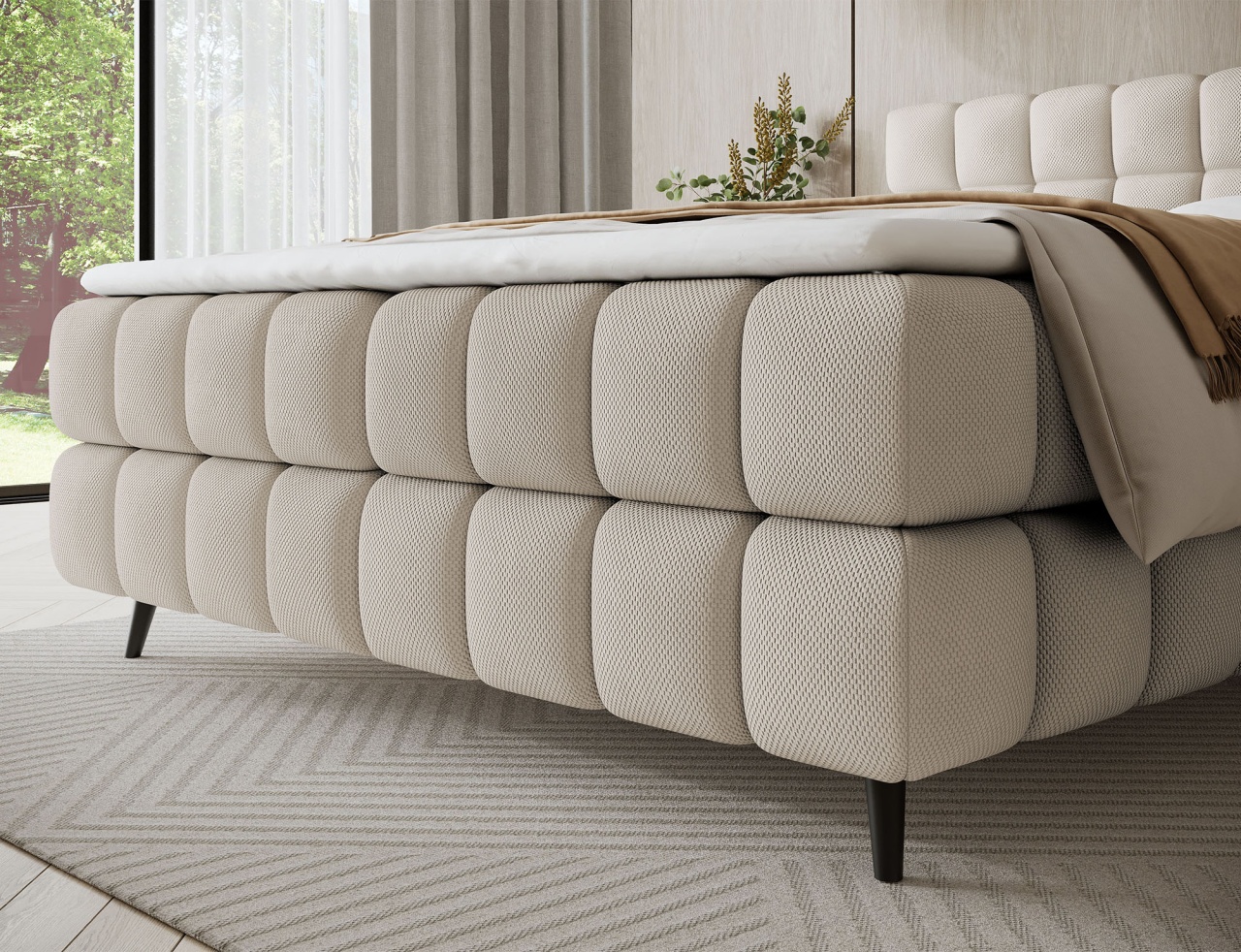 Patul continental Sabeno este o alegere elegantă și funcțională pentru orice dormitor modern. Modelul este disponibil în trei variante de dimensiuni: 140x200 cm, 160x200 cm și 180x200 cm, permițându-vă să ajustați lățimea patului în funcție de nevoile individuale. Confortul în timpul somnului este asigurat de combinația dintre arcurile Bonell și spuma T2540, care oferă susținere adecvată și durabilitate. Patul Sabeno este echipat cu un compartiment practic pentru depozitarea lenjeriei. Picioarele negre din lemn completează designul, adăugând eleganță subtilă și lejeritate. Stilul modern al patului Sabeno îl face să se potrivească perfect atât în interioare minimaliste, cât și în amenajări mai expresive. Datorită funcționalității, materialelor de înaltă calitate și finisajului estetic, patul continental Sabeno este alegerea ideală pentru cei care apreciază confortul, durabilitatea și mobilierul de dormitor stilat. Dimensiuni: Lățime: 182 cm Lungime: 222 cm Înălțime: 102 cm Înălțime șezut: 56 cm Suprafață dormit: 160x200 cm Înălțime picioare: 10 cm Recipient depozitare lenjerie de pat: 2x 182x76x15 cm Spătar tapițat: nu Capacitate ridicare: 240 kg Produsul nu este montat, montarea este rapidă și ușoară. Produsul este personalizabil, culoarea și materialul se aleg pe baza paletarelor la cererea clientului. Prețul poate suferi modificări în funcție de grupa de material aleasă.