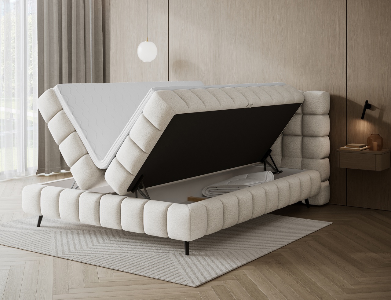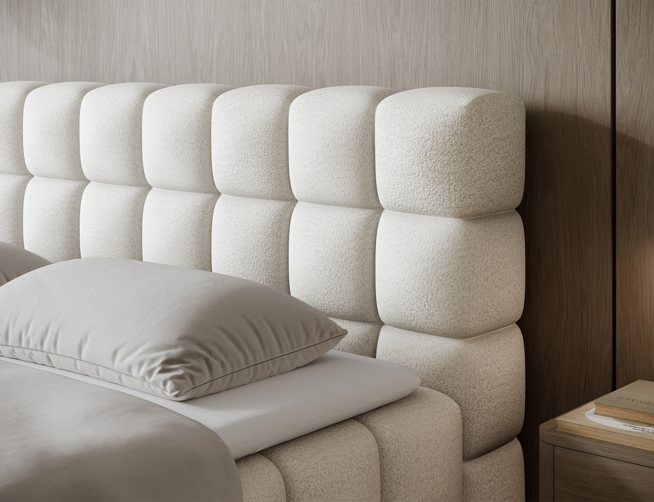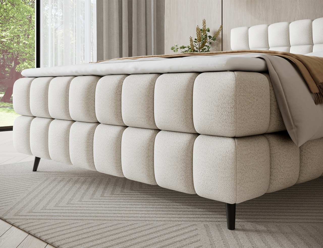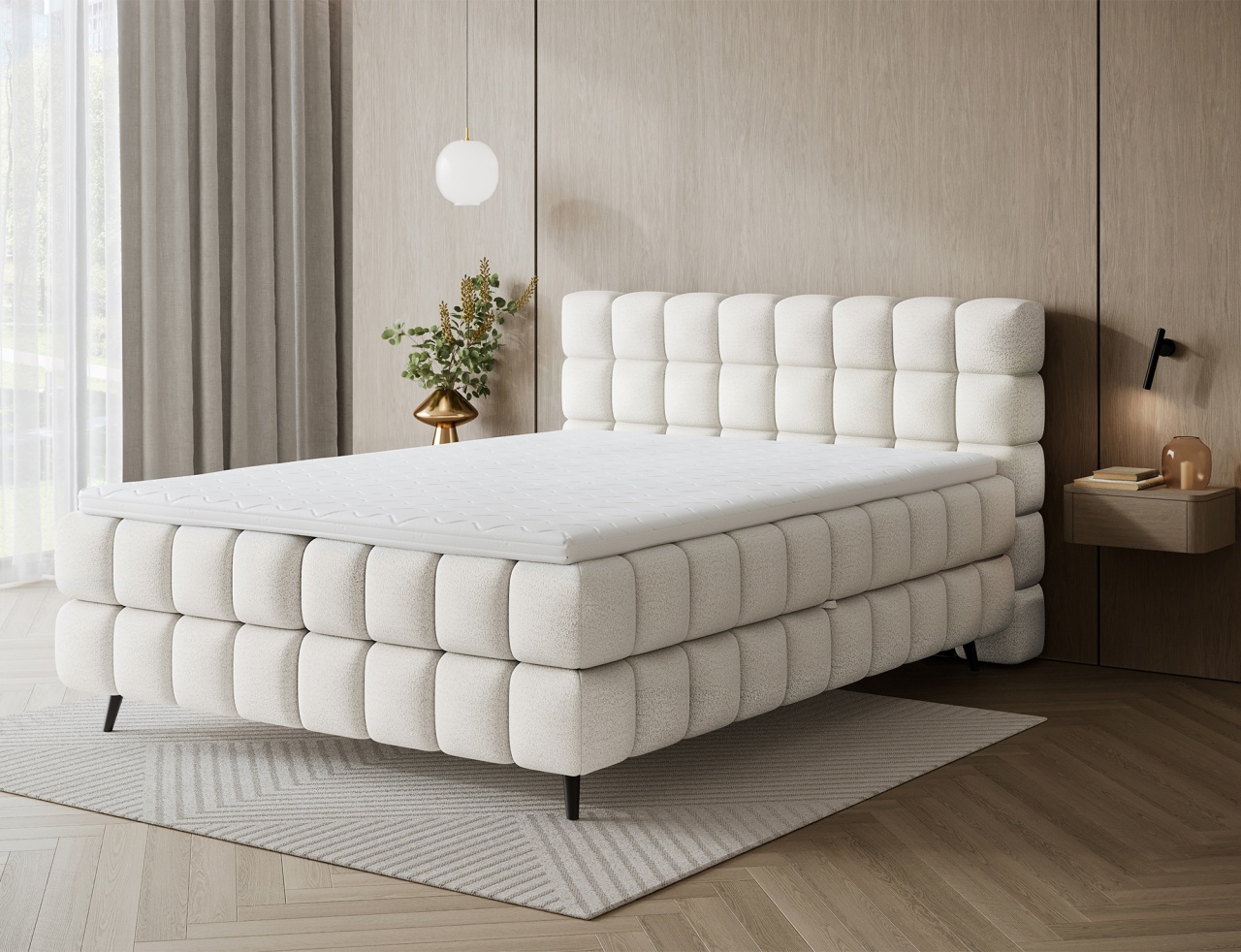 Patul continental Sabeno este o alegere elegantă și funcțională pentru orice dormitor modern. Modelul este disponibil în trei variante de dimensiuni: 140x200 cm, 160x200 cm și 180x200 cm, permițându-vă să ajustați lățimea patului în funcție de nevoile individuale. Confortul în timpul somnului este asigurat de combinația dintre arcurile Bonell și spuma T2540, care oferă susținere adecvată și durabilitate. Patul Sabeno este echipat cu un compartiment practic pentru depozitarea lenjeriei. Picioarele negre din lemn completează designul, adăugând eleganță subtilă și lejeritate. Stilul modern al patului Sabeno îl face să se potrivească perfect atât în interioare minimaliste, cât și în amenajări mai expresive. Datorită funcționalității, materialelor de înaltă calitate și finisajului estetic, patul continental Sabeno este alegerea ideală pentru cei care apreciază confortul, durabilitatea și mobilierul de dormitor stilat. Dimensiuni: Lățime: 182 cm Lungime: 222 cm Înălțime: 102 cm Înălțime șezut: 56 cm Suprafață dormit: 160x200 cm Înălțime picioare: 10 cm Recipient depozitare lenjerie de pat: 2x 182x76x15 cm Spătar tapițat: nu Capacitate ridicare: 240 kg Produsul nu este montat, montarea este rapidă și ușoară. Produsul este personalizabil, culoarea și materialul se aleg pe baza paletarelor la cererea clientului. Prețul poate suferi modificări în funcție de grupa de material aleasă.